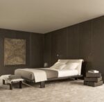The Tibeau bed is a bold and robust creation that celebrates wood as its central material, bringing strong character to any bedroom.