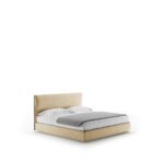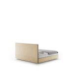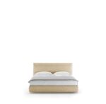 The soft-yet-structured silhouette of the Ribbon bed by Vincent Van Duysen is a pristine design for the contemporary bedroom. The king-sized frame is upholstered in soft chenille with a contrasting leather stripe dileneating the soft edges.