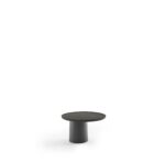 The Louisa collection by Vincent Van Duysen features coffee tables that are irresistibly tactile. This round variation is ideal for intimate gatherings. An innovative construction of joining slabs allows for a tray-like suspension from a conical central plinth. Eucalyptus wood and cement form a symbiotic relationship of solidity and beauty.